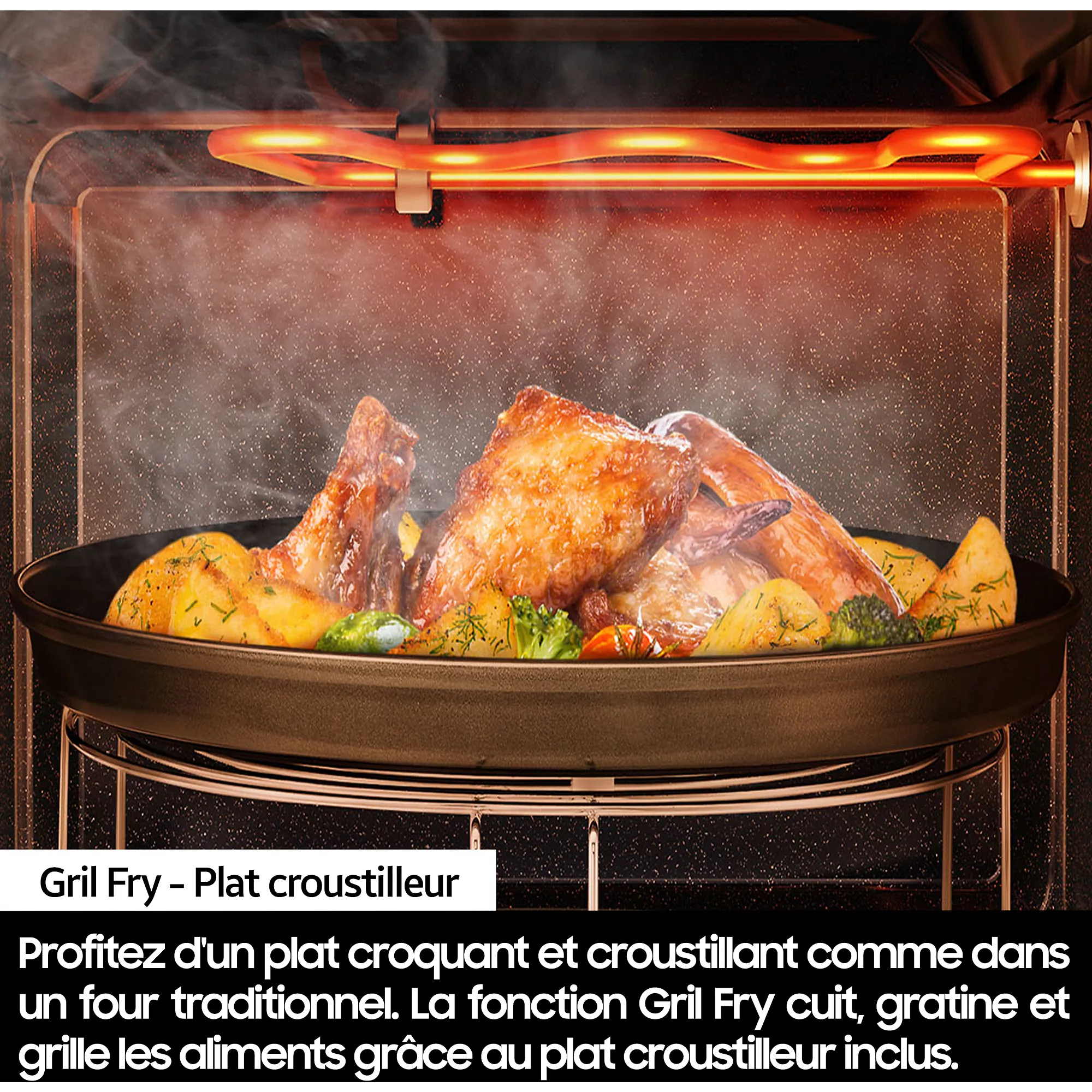 • Grill quartz performant pour des cuissons dorées et croustillantes.